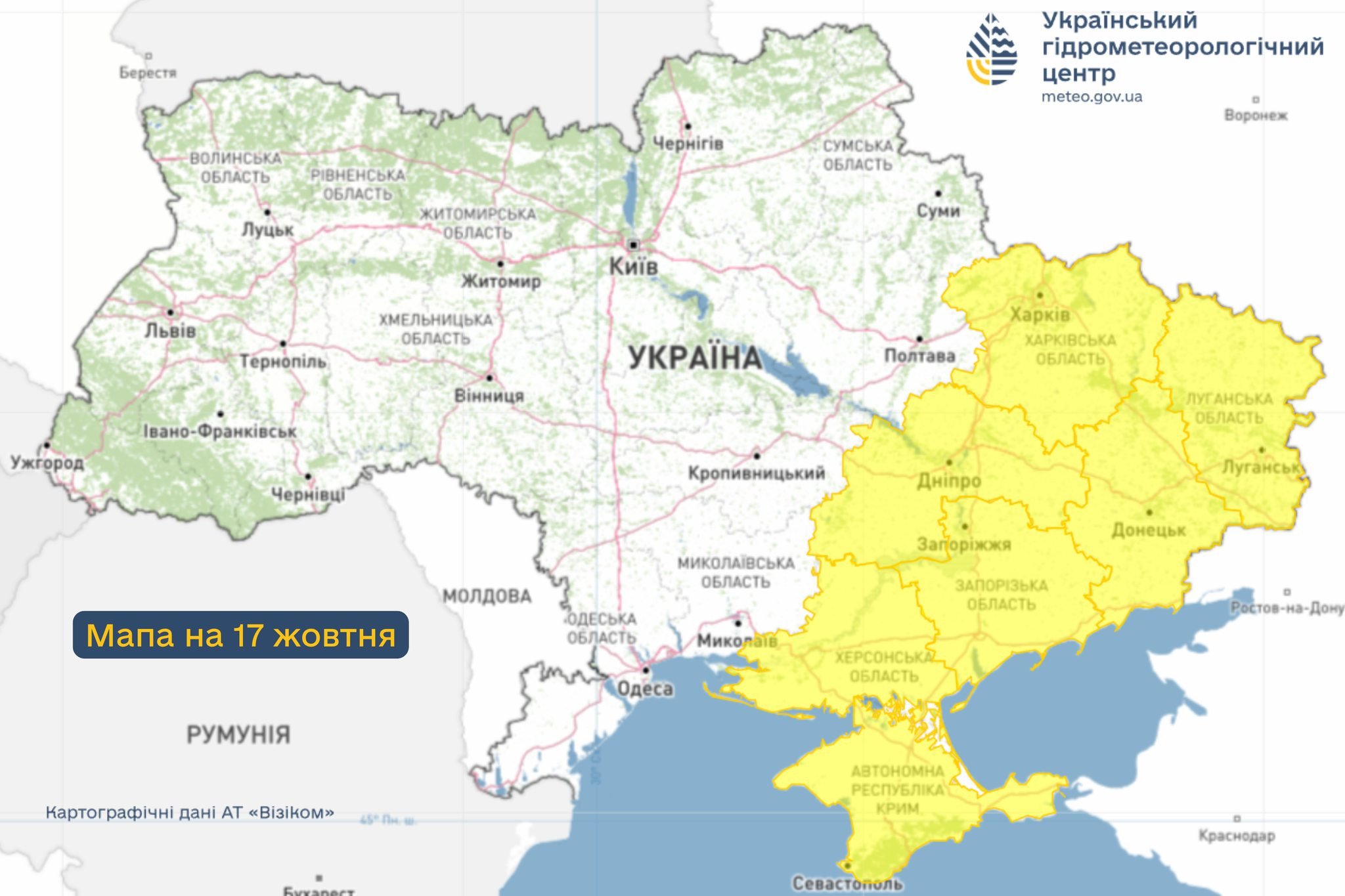 Про це повідомили синоптики Укргідрометцентру.